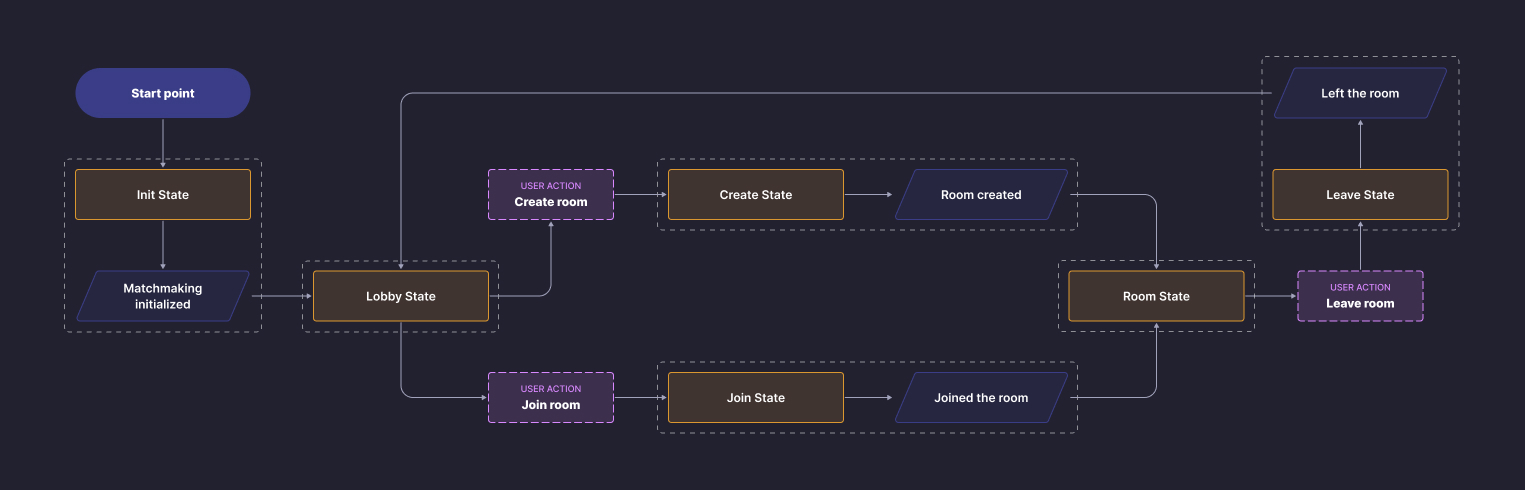 * `Init State` : initialize Matchmaking client, setup user's Actor, then go to Lobby State