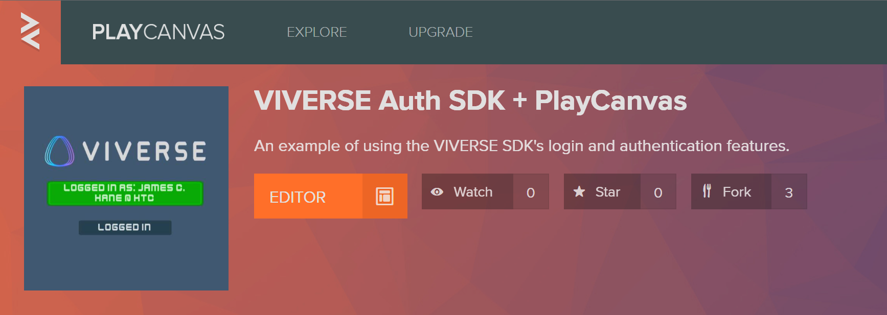 We'll base this project on the [PlayCanvas Login & Authentication minimal example](https://docs.viverse.com/developer-tools/login-and-authentication-for-the-sdk/playcanvas-login-and-auth-minimal-example), which already shows how to add the VIVERSE SDK to external scripts, then `checkAuth()`  and run the SSO login loop if necessary, all within the `viverse-manager.mjs` script. This will be required before we can set up and use the Storage SDK. Fork the project, and don't forget to replace the App ID in the script with the one you created in Pre-requisite #1.