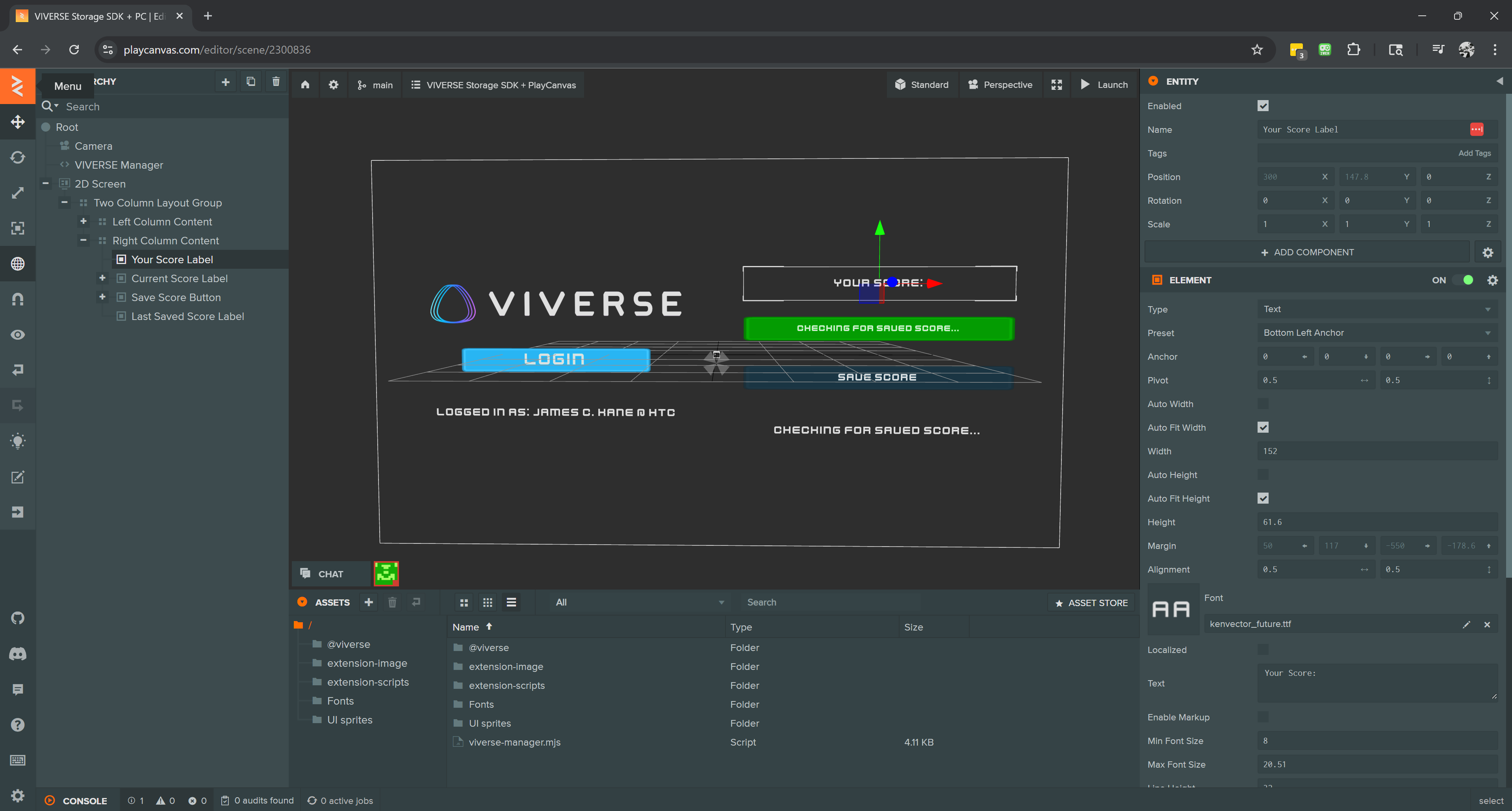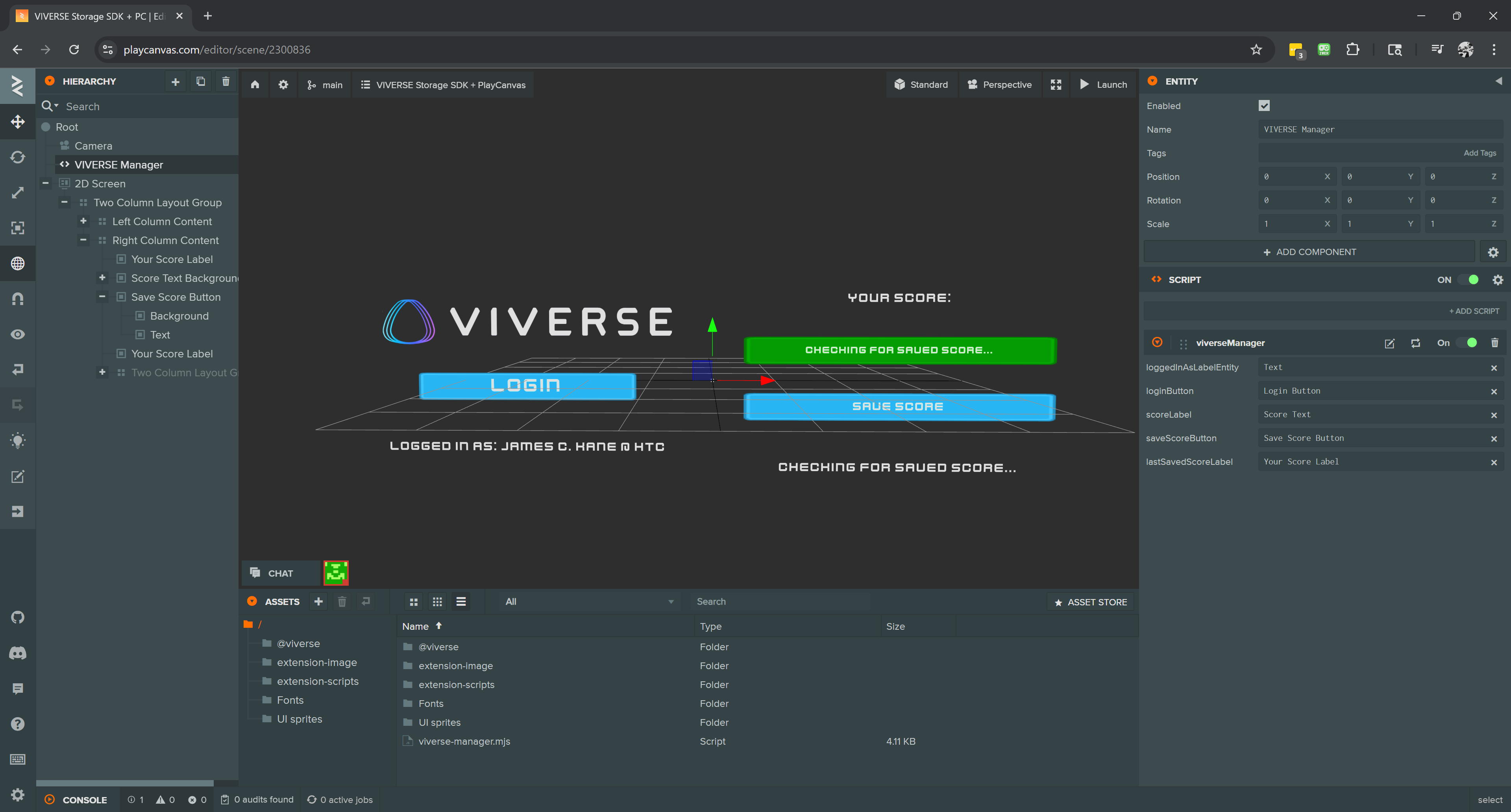 That's it! That should fulfil our minimal requirements to use the VIVERSE Storage SDK along with PlayCanvas UI. Now we just need to export and publish.