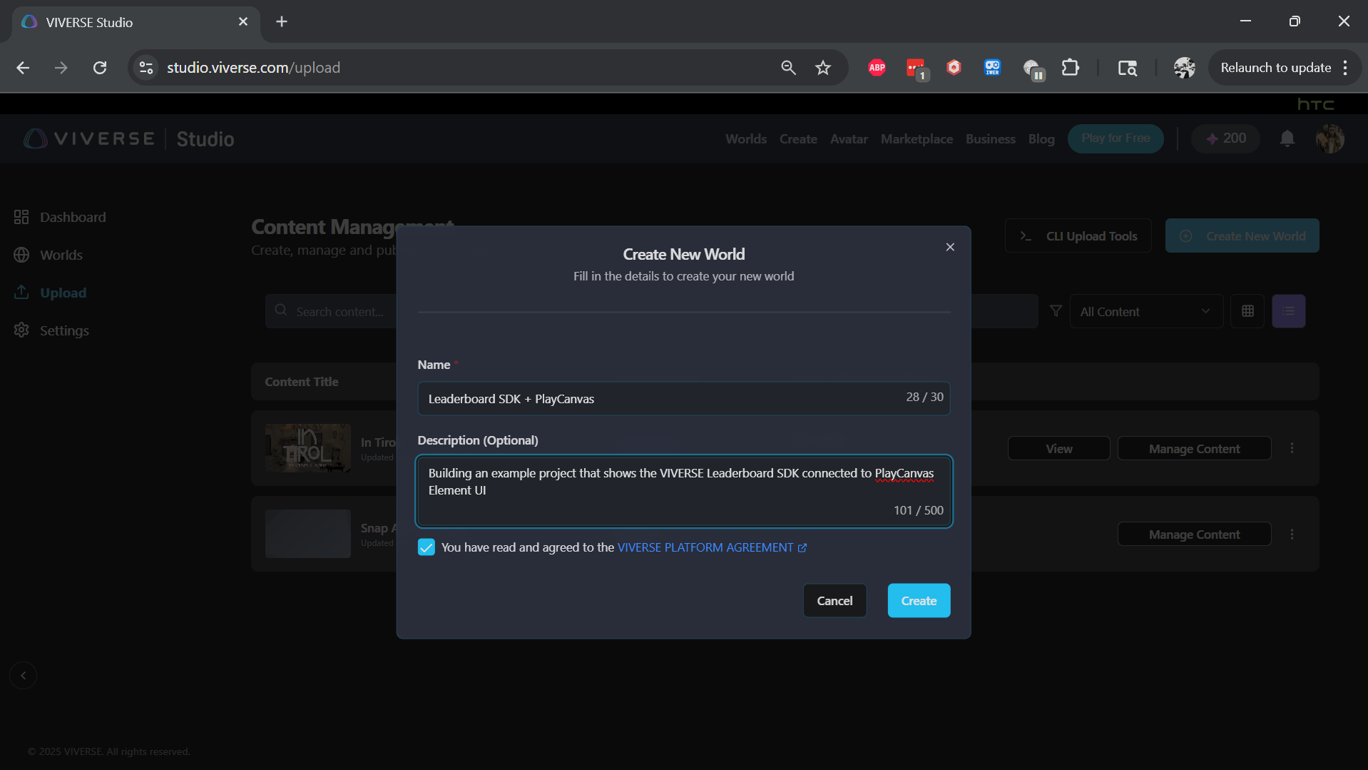 ### Pre-requisite #1: Create a World, App ID and Leaderboard in VIVERSE Studio&#x20;