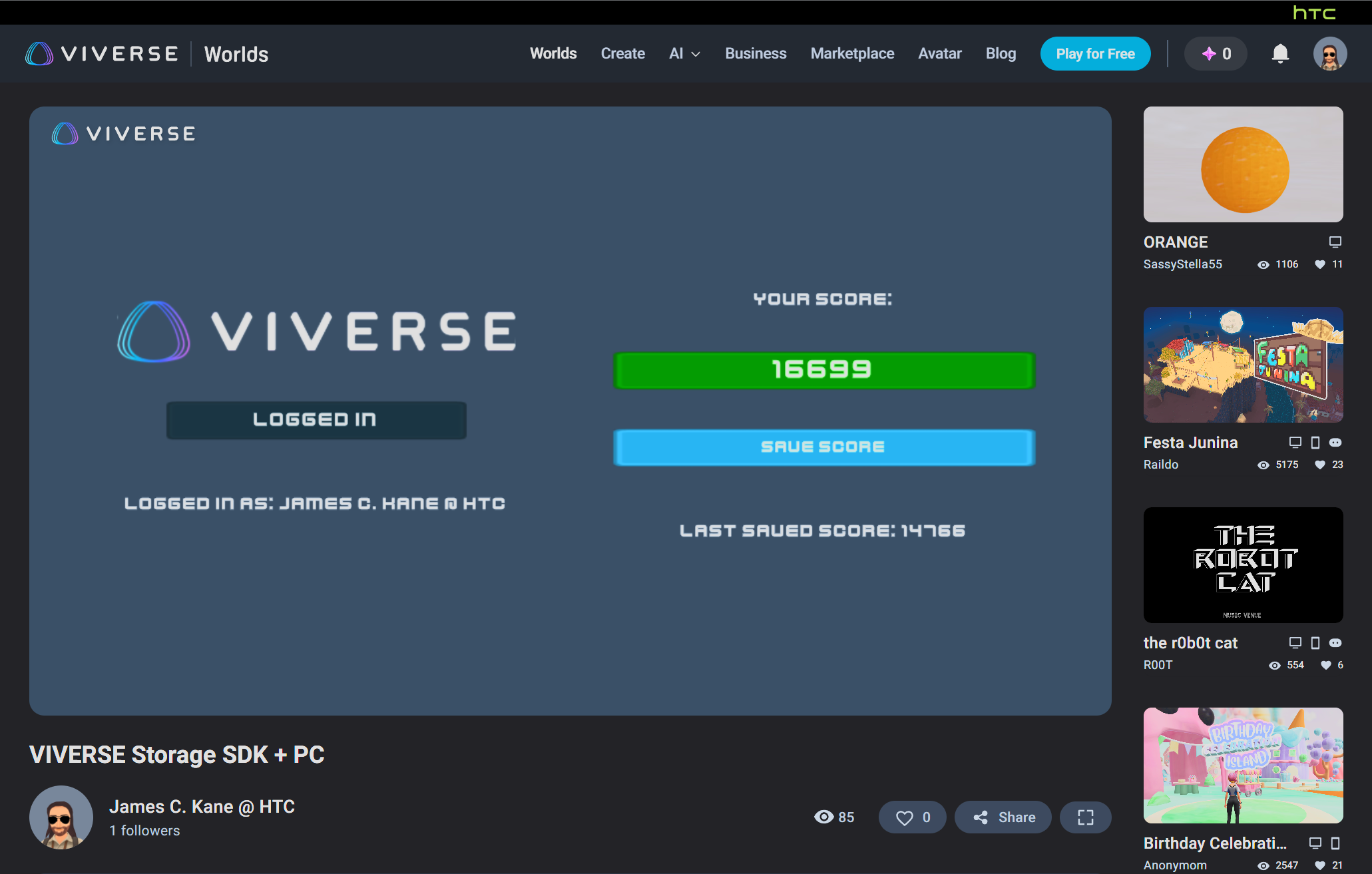 Public PlayCanvas project: <https://playcanvas.com/project/1380461/overview/viverse-storage-sdk--pc>